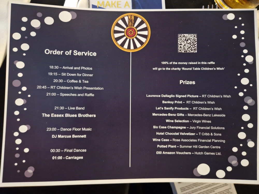A massive thank you to Dominic Brittain who not only Ran the London Marathon for Round Table Children’s Wish but coordinated the evening along with the members of Leigh on Sea Round Table and the Round Table Family member Clubs who attended on the night.